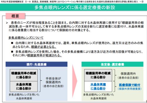 2020年4月に行われる診療報酬改定に向けて、特に病院経営に深く関わる項目、社会的意義がある項目を注目すべきトピックをご紹介します。 今回のテーマは、「多焦点眼内レンズに係る選定療養の新設」です。 多焦点眼内レンズとは? 白内障に対する水晶体再建…